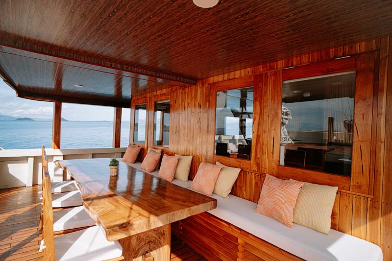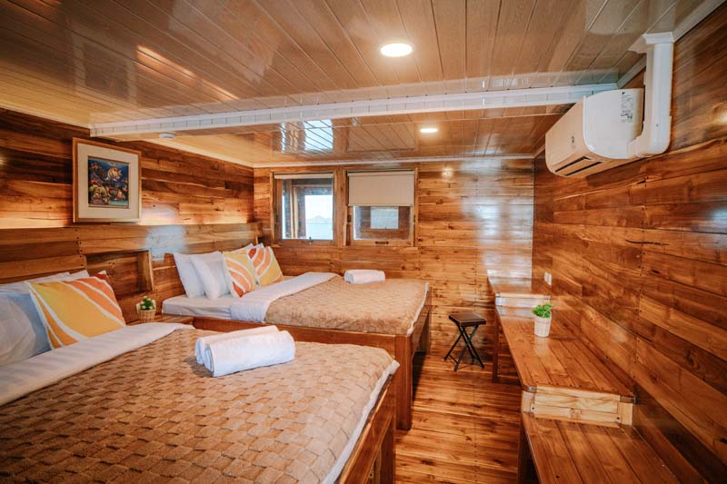 Available for Charter | Seaview Cabins | Aircon Cabins | Sun Deck | Non-Diver (Snorkeler) Friendly | Warm Water Showers | Outdoor Dining | Custom built for diving | Charging stations | En-Suite bathrooms | Non-Smoking Rooms | Outside Showers | Family Cabins | Camera Room | Snorkeling Equipment | Separate Rinse for u/w Camera | Leisure Deck | Observation Deck | Paddle Board & Canoe